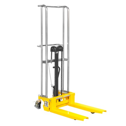 Имеет грузоподъемность 400 кг и высоту подъема 1500 мм. Наиболее эффективен в условиях ограниченного пространства на небольшой площади.