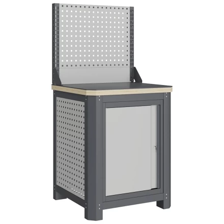 - экран (перфорированная панель) верстака выполнен с квадратной перфорацией 12х12 мм с шагом 38 мм для установки крючков, держателей и других аксессуаров;
